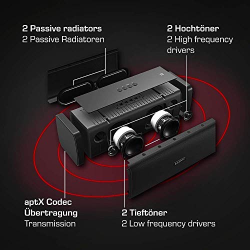 ▶️QUALITÀ DEL SUONO IMPRESSIONANTE: Un'intera gamma di driver (due tweeter e due mid/woofer per canale e due woofer passivi) e la tecnologia aptX garantiscono una qualità del suono bilanciata, indipendentemente dal volume o dallo stile musicale