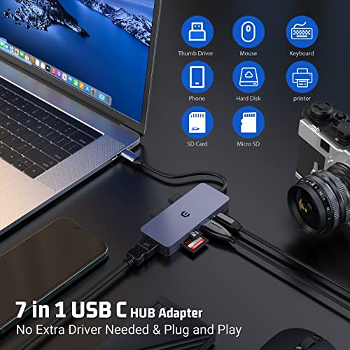 【100W USB C di ricarica rapida】 Questo hub per laptop può fornire fino a 100 W di potenza per caricare i laptop di consegna di alimentazione USB e portare ulteriore energia ad altri dispositivi USB come dischi rigidi, unità flash, smartphone e ecc. gestendo il nostro potere. Nota: Caricabatterie non incluso.