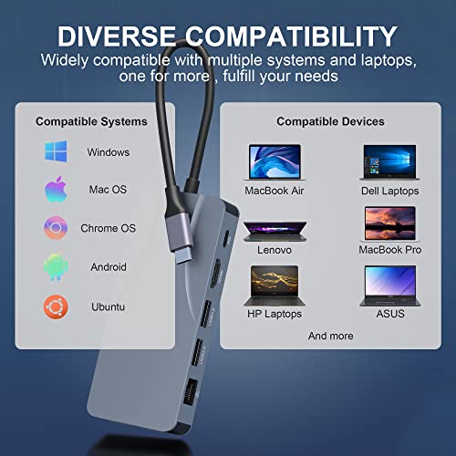 Docking Station USB C Hub con HDMI 4K@60Hz, 11 in 1 USB C Laptop Docking Station con USB 3.0, PD 100W ed 1Gbps Ethernet, Compatibile con MacBook Pro/Air 2023/2022/2021/2020