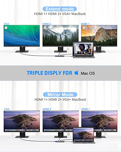 Triplo display per Mac OS e Windows: questo dongle USB C aggiornato supporta MST, che può riprodurre o ampliare tre schermi sia sotto Mac OS che sotto Windows (2 HDMI + 1 VGA). Con 1 host e 3 monitor, è possibile gestire più applicazioni più comodamente. I connettori HDMI supportano una risoluzione fino a 4K a 30 Hz, offrendo una festa visiva come nel cinema.