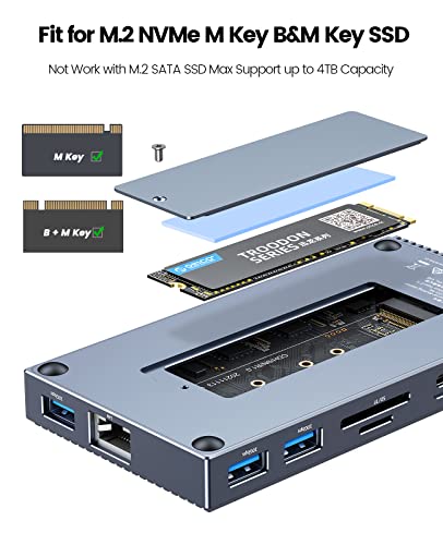 Docking Station USB C con M.2 NVMe SSD Enclosure, ORICO 9-in-1 USB-C Hub Adattatore con 100W PD, 3 * 10 Gbps USB 3.1 USB-A, USB 3.1 Type-C, HDMI 4K 30 Hz, TF/SD, Ethernet RJ45, Audio/Mic da 3,5 mm