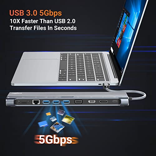 ✅ Docking station USB-C 12 in 1: la docking station USB-C, tutte le estensioni da un hub di tipo C, ottieni 1 uscita HDMI, 1 DP, 1 VGA, risoluzione massima 4K e video vivido, supporto per estensione modalità o modalità specchio, HDMI 3840*2160 a 30 Hz, DP 3840*2160 a 30 Hz, VGA 1920*1080 a 60 Hz. 1 porta di ricarica PD 3.0 di tipo C offre una velocità di ricarica super veloce fino a MAX 100 W, 3 porte USB 3.0,1000 M Gigabit Ethernet e slot per schede SD/TF;