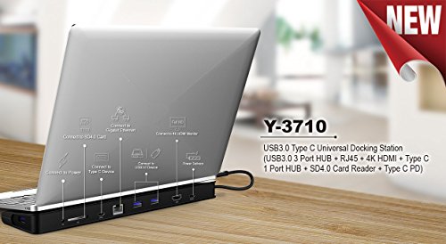 Docking station universale USB 3.0 di tipo C, 1 porta HDMI, 1 porta Gigabit Ethernet, 3 porte USB-A 3.0, 1 porta USB-C 3.0, 1 lettore di schede SD4.0, 1 alimentatore USB-C.