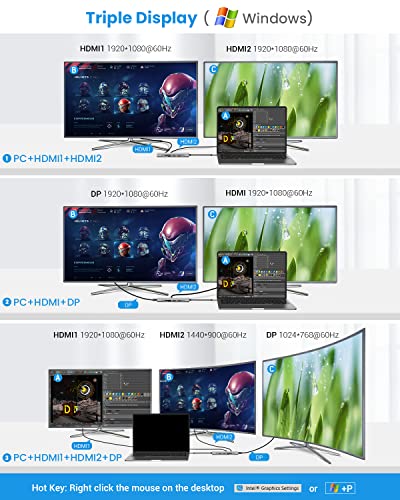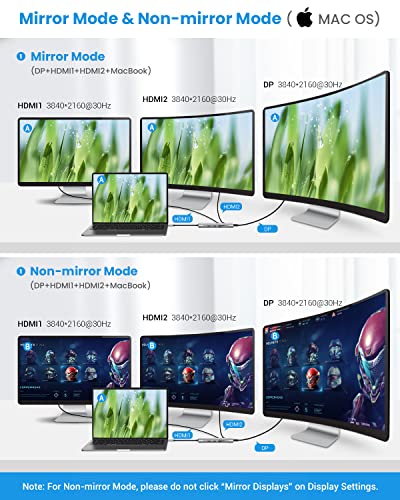 Crystal 4K Video Output Docking Station 3 Monitor: Con l'aiuto della docking station QIYO MacBook è possibile collegare i 3 monitor esterni contemporaneamente. Con risoluzione massima fino a 3840 x 2160 @ 30 Hz. Si prega di notare che quando il laptop Windows si espande a 3 display esterni, lo schermo del laptop sarà vuoto. Per ulteriori impostazioni e risoluzioni del display, fare riferimento alla descrizione del prodotto.