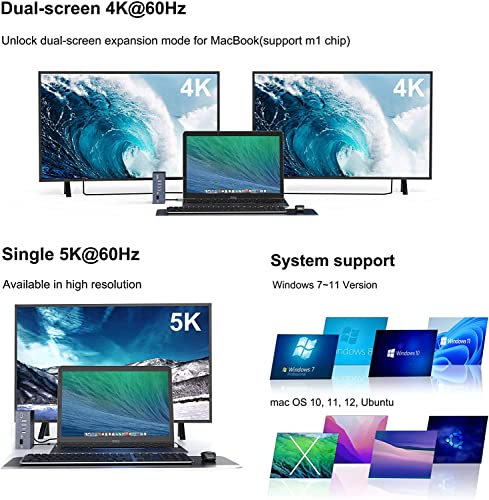[USB C to Dual HDMI Hub]: Questa doppia docking station 4K consente di collegare due monitor 4k Ultra HD attraverso un'unica connessione, in modo da poter visualizzare videogiochi, guardare clip e altro ancora. È compatibile con Macbook Pro/Air con Intel, M1 o M1 Pro/Max;