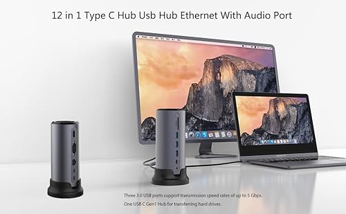 Docking station usb c, hub USB C 12 in 1, 3 porte USB 3.0, HDMI 4K, lettore di schede SD/TF, VGA, Ethernet 1 Gbps, porta di ricarica rapida PD 87W, compatibile con MacBook, Surface, DELL, HP Wait