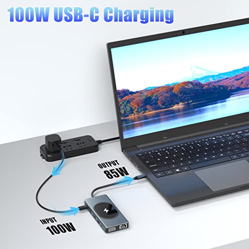 ♥Ricarica USB-C da 100 W: questa docking station può aiutarti a caricare il tuo laptop con un'uscita fino a 100 W mentre colleghi più periferiche senza preoccuparti dell'accumulo di energia, utilizzalo durante la ricarica. Nota: assicurati che il tuo dispositivo supporti il protocollo Power Delivery.