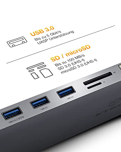 ICY BOX Docking Station USB-C (11-in-1) con 2x HDMI & 1x VGA, 3x USB 3.0 HUB, Alimentazione 100W, Gigabit Ethernet, DisplayLink, Dock Universale, IB-DK2106-C