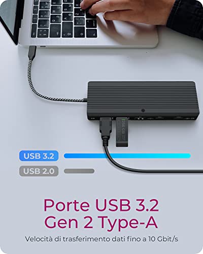 ICY BOX Docking Station USB-C (12-in-1) con 2x HDMI & 2x DP (4K 60Hz), 4x USB 3.0 HUB, Gigabit Ethernet, DisplayLink, Dock Universale, IB-DK4080AC