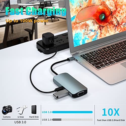 【Hub USB-C 5 in 1】 Plug and play. Trasforma una singola porta USB-C in 5 porte per il trasferimento di dati, audio, video e ricarica. Docking station USB-C ad alte prestazioni con porta di ricarica PD, due porte HDMI 4K, porta VGA, 1 porta USB 3.0.