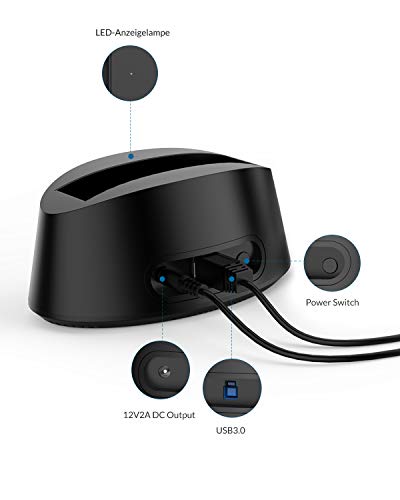 Docking station, Yottamaster USB 3.0 HDD Docking station per disco rigido HDD/SSD da 2,5 e 3,5 pollici con alimentatore 12V2A UASP supportato [Windows / Mac / Linux]