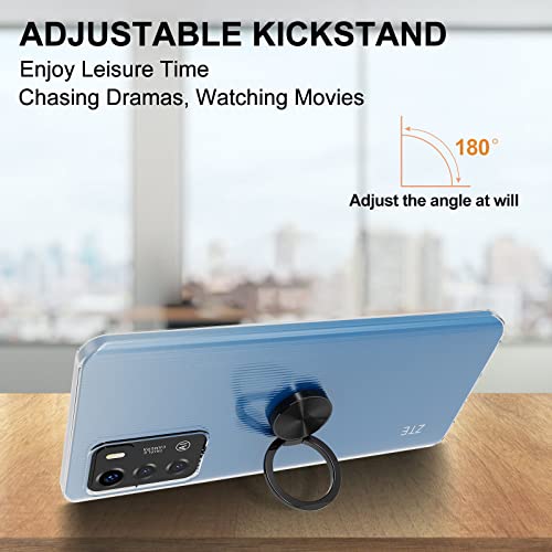 DOCOO Cover Compatibile con ZTE Blade A72, Custodia Trasparente Silicone con Anello Ruotabile Cavalletto, Quattro Angoli Anti-Caduta Crystal Clear Case - Anello Nero