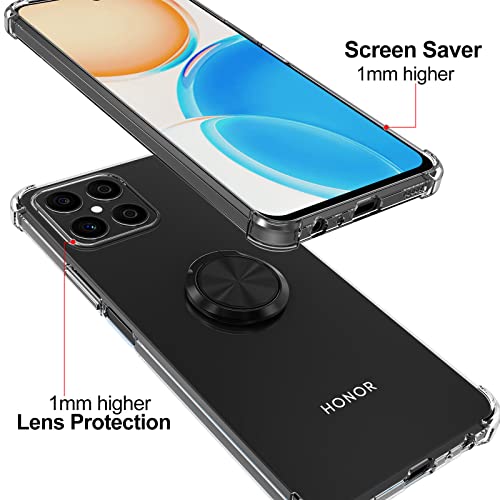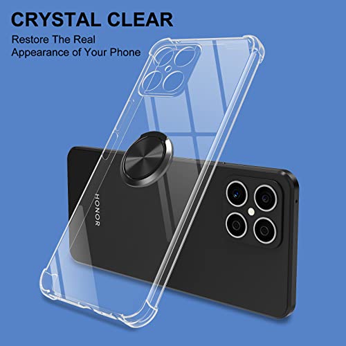 DOCOO Cover Compatibile con Honor X8, Custodia Trasparente Silicone con Anello Ruotabile Cavalletto, Quattro Angoli Anti-Caduta Crystal Clear Case - Anello Nero