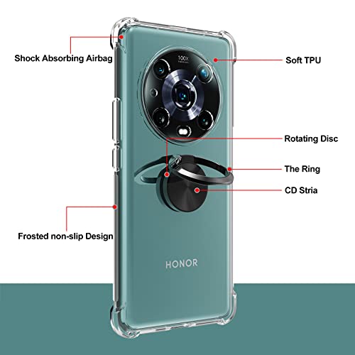DOCOO Cover Compatibile con HONOR Magic 4 Pro 5G, Custodia Trasparente Silicone con Anello Ruotabile Cavalletto, Quattro Angoli Anti-Caduta Crystal Clear Case - Anello Nero