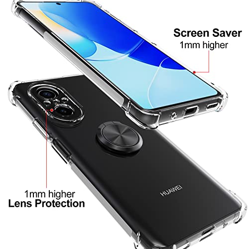 DOCOO Cover Compatibile con Huawei Nova 9 SE, Custodia Trasparente Silicone con Anello Ruotabile Cavalletto, Quattro Angoli Anti-Caduta Crystal Clear Case - Anello Nero
