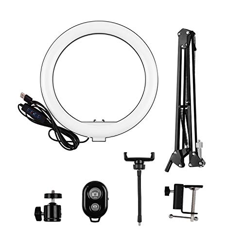 Docooler 26 cm Anello luminoso con supporto, supporto per telefono e telecomando del telefono, anello luminoso a led dimmerabile a 3 colori per TikTok Youtube Vlogging Photo Makeup Selfie