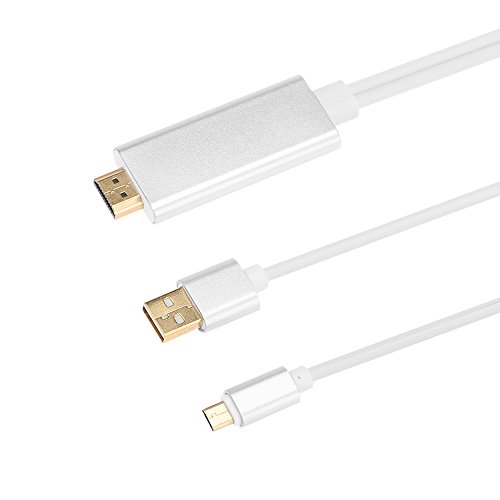 [2 in cavo 1 multifunzionale]È compatibile con il micro USB 5 pin per la conversione HD. Dotata di interruttore di punti, può controllare l'uscita dei suoni, 1080P 60Hz uscita Full HD con interfaccia HD. Hai solo bisogno di connettersi per Phone / iPad / Android connettersi con HDTV, la fusione dello schermo del telefono a HDTV o lo schermo dell'automobile del sistema, proiettore, ecc