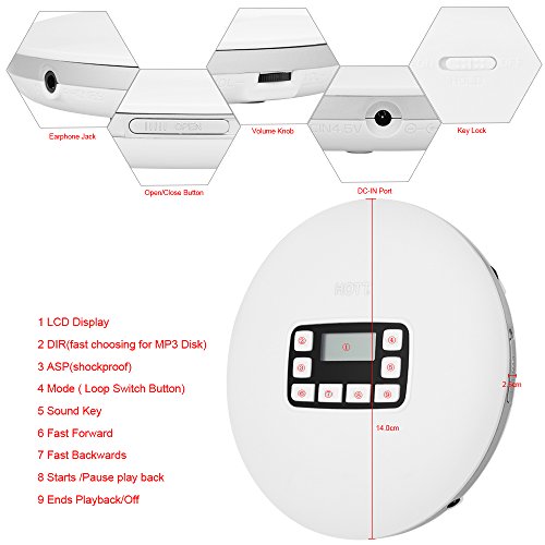 Docooler HOTT CD611 Riproduttore CD AntiGraffio Antiurto Tipo di Disco CD/CD-R/CD-RW Riproducibile Formatta CD-da / MP3 / WMA