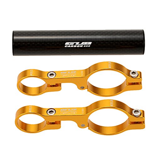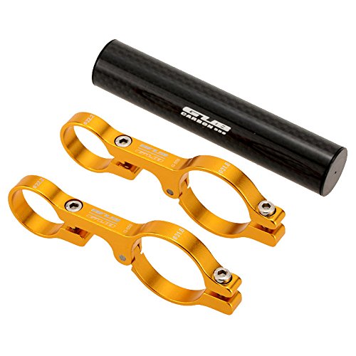 Docooler, doppia staffa per estensione manubrio della bicicletta, diametro 31,8 mm, con torcia luminosa, luce a LED, salvaspazio, in fibra di carbonio, Gold