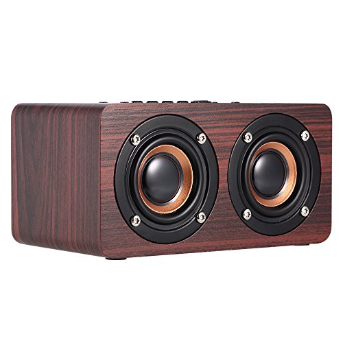Docooler W5 Grano di Legno Rosso Altoparlante Bluetooth 4.2 Due Altoparlanti Subwoofer Super Bass Hands-Free con Mic Scheda AUX-in da 3,5 mm TF