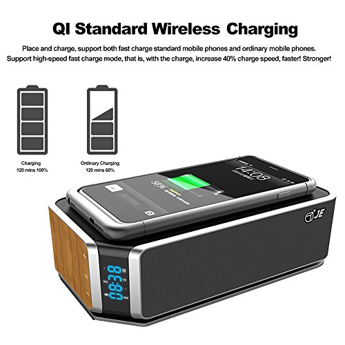 Docooler JE HIFLY Bluetooth Speaker Caricatore Wireless Portatile In Legno Per Telefoni Con Indicazione Del Tempo Sveglia Pulsanti Touch Supporto TF Card E AUX IN FM Radio NFC