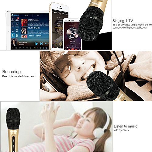 Docooler iMicrophone Karaoke Player Senza Fili Bluetooth Microfono a Condensatore Bluetooth 4.0 3,5 Millimetri AUX-IN con Microfono Altoparlante KTV Canto Record per i Telefoni Computers