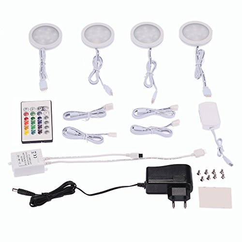 Docooler 4 Pezzi Luce per Armadio RGB Telecomando IR Multi-colore di Illuminazione Dimmerabile di Cucina Mensola Dell'armadio Libro