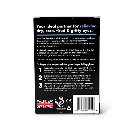 TRATTAMENTO CALDO: raccomandato dal dottor Hilary Jones, The Eye Doctor essential, è un impacco caldo riutilizzabile che costituisce un trattamento efficace per aiutare ad alleviare i sintomi di secchezza oculare, MGD, blefarite e chalazion (cisti palpebrali).