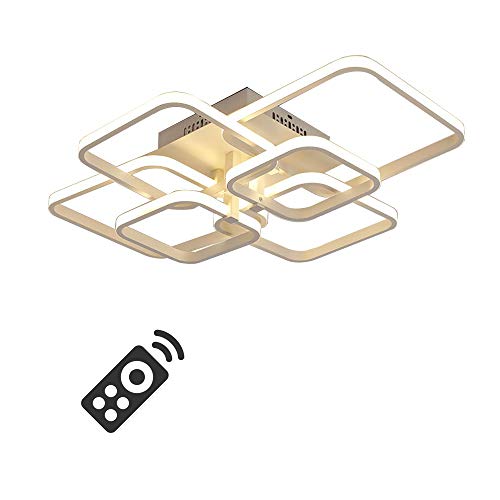 DODOBD Moderna Plafoniera a LED, Lampada con Lampadari a LED in Acrilico, Plafoniera Creativa Quadrata a 4 Anelli, Lampada a Sospensione da Incasso per Soggiorno, Cucina, Sala da Pranzo