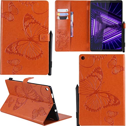 DodoBuy Custodia per Lenovo Tab M10 FHD Plus 10.3" Tablet, 3D Farfalla Modello Flip in Pelle PU Cuoio Copertura Case Cover Wallet Supporto con ID Credito Carta Titolare Chiusura Magnetica - Arancia