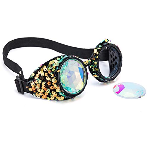 DODODOING Caleidoscopio Rave Rainbow Crystal Lenti Steampunk Occhiali da festa Nero. Taglia Unica