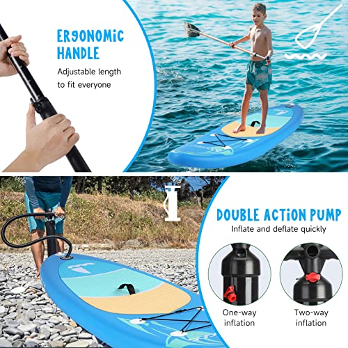DODOSELF Tavole gonfiabili da stand up paddle Set per bambini Gonfiabile Paddle Board 245x74x12 CM con zaino, pagaia, pompa, guinzaglio, sacca impermeabile, pinna, tracolla