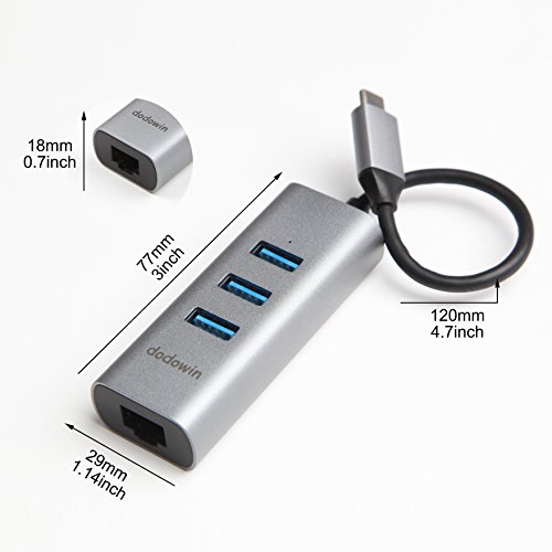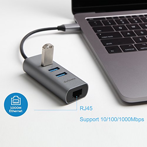 Dodowin Hub multiporta per MacBook Pro, con porte USB Tipo-C, HDMI ed Ethernet USB C Ethernet-Gris