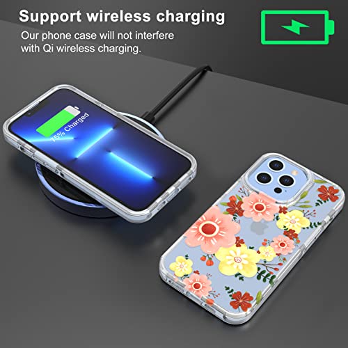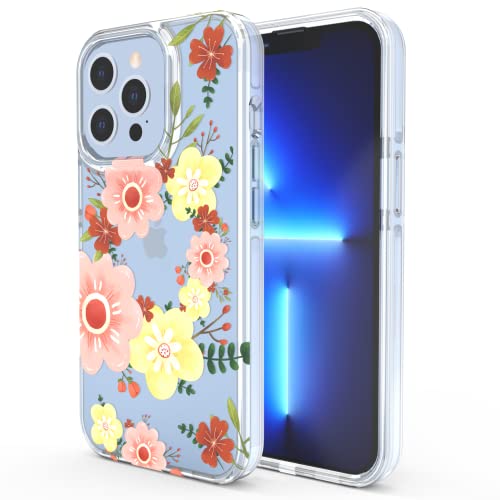 Doeboe Custodia Compatibile con iPhone 13 Pro Cover 2021, Custodia Trasparente per iPhone 13 Pro 6.1", per Donne e Ragazze, con Motivo Floreale, Sottile e Morbido TPU, Antiurto