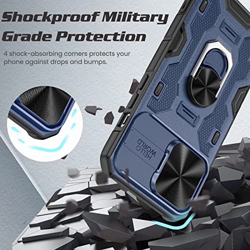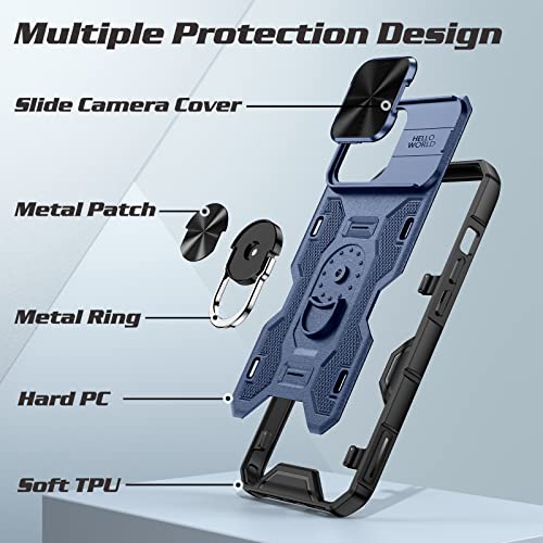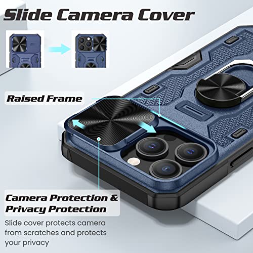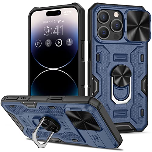 Doeshine Custodia per iPhone 14 Pro Max, Copertura per Fotocamera Scorrevole, Supporto Magnetico Integrato per Anello Girevole a 360 °, Custodia per iPhone 14 Pro Max 6.7 (Blu)