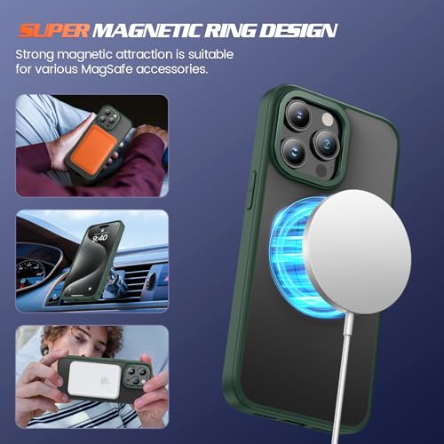 Doeshine Custodia per iPhone 15 Pro max resistente agli urti, antigraffio, 6,7 pollici, con morbido tocco setoso, con magsafe (verde)