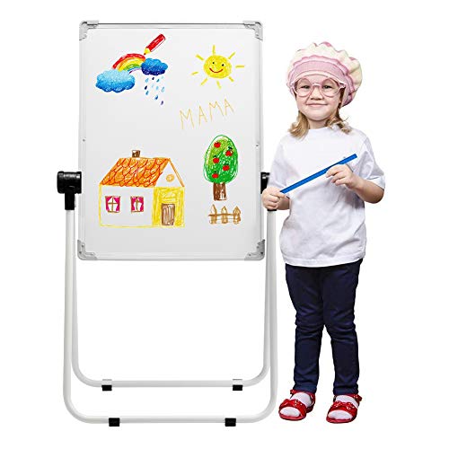 DOEWORKS Lavagna per Bambini Cavalletto per Bambini Lavagna Magnetica per Bambini, Lavagna Bianca e Lavagna con Sacchetto di Stoccaggio, Regolabile in Altezza e Girevole a 360 °, Bianca