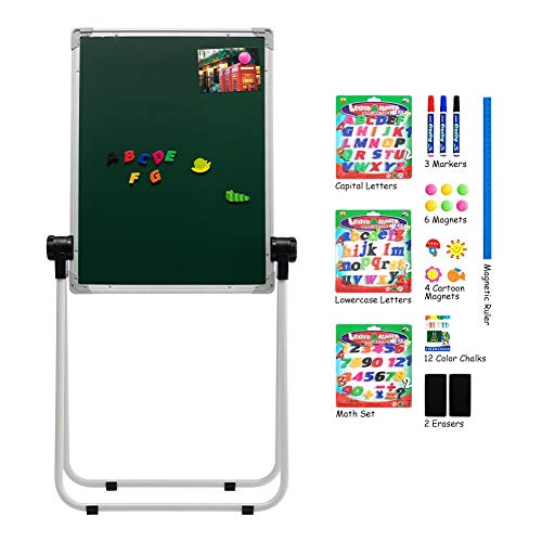Doppi lati: lavagna e lavagna e accessori di lusso per i bambini per fare i compiti o giocare, disegnare. AVVISO: la lavagna solo per i gessetti, non usare il gesso liquido sulla lavagna. La lavagna solo per i pennarelli