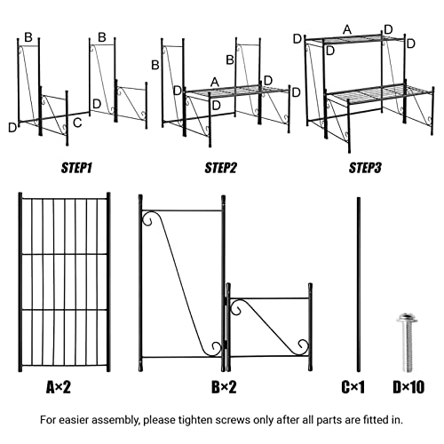 DOEWORKS Scaffale per scaffali per scaffali da 2 piani in metallo, ripiano portafiori per fiori, nero