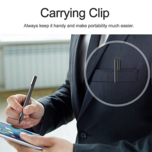 Facile da trasportare e lunga durata della batteria: il materiale leggero con design a clip rende questa penna stilo facile da usare e trasportare una penna in quanto si può agganciare in tasca, diario, iPad, penloop, ecc. Tablet Stylus Con porta di ricarica USB e batteria integrata fornisce 10 ore di utilizzo attivo e solo > 2 ore di ricarica. Con la funzione di risparmio energetico intelligente, la penna si spegne automaticamente ogni 5 minuti. Stylus capacitivo NO Bluetooth o APP richiesto.