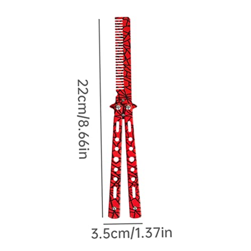 DOGARI Folding Comb,Butterfly Flick Comb,Comb Trainer Stainless Steel Unsharpened Slice Butterfly Training Comb for Beginner Red Combs