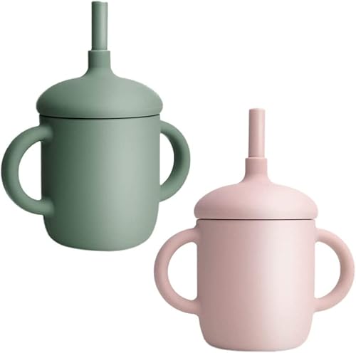 DOGARI Silicone Toddler Cup Sippy Cup with Straw and Handle Trainer Bottle for Infants Above 12 Months 2 Pcs Sippy Cups