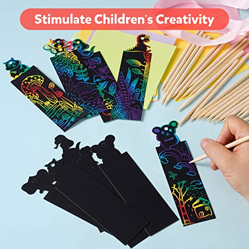 DoGeek 48 Pezzi Segnalibri Scratch Art per Bambini Creazioni Fai da Te Arcobaleno Etichette Regalo Graffi Magici Set di Etichette con Corde Colorate e Stilo in Legno (Animale 48PCS)