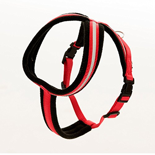 L'imbracatura Comfy è disponibile in 8 taglie ed è di colore rosso e nero.