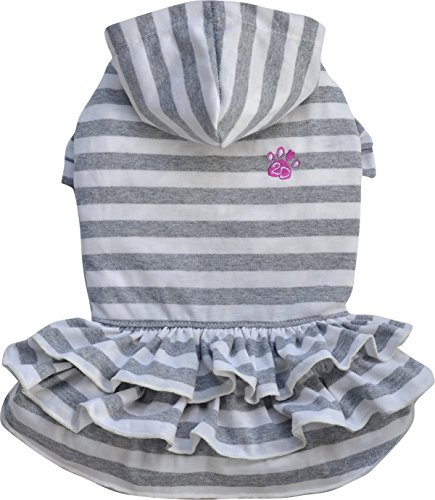 D410 Vestito per cani XXL in cotone rigato bianco e grigio, con volant e cappuccio.