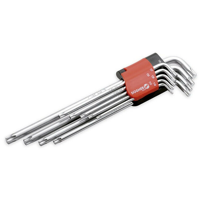 Set di chiavi corte maschio esagonale Dogher o anche chiavi a brugola. Strumenti utilizzati per avvitare o svitare le viti con una testa esagonale interna. Caratteristiche tecniche: Il design è semplice, piccolo e leggero Fabbricazione in acciaio al cromo-vanadio 9 pezzi Forma esagonale