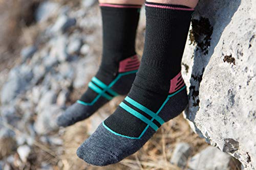 Regolazione della temperatura: le fibre di lana sono veri tuttofare, che possono adattarsi alle stagioni e alle vostre esigenze. Le calze da trekking riscaldano in caso di freddo e si raffreddano al caldo, in modo che le calze possano essere indossate tutto l'anno