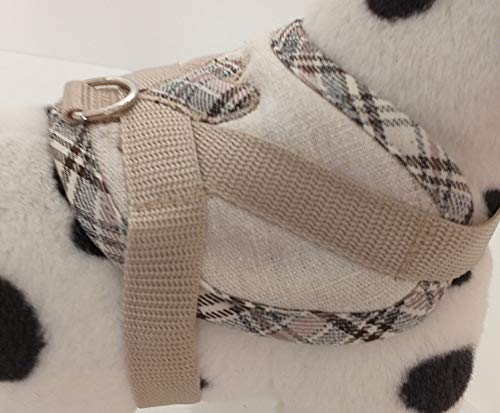 Masi Dogsdesign XS S M Pettorina per cani a quadretti beige a forma di cuore, pettorina regolabile per cuccioli Chihuahua Prager Rattler Yorkshire Terrier bassotto Malteser (M)
