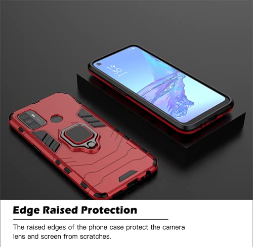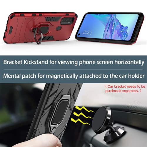 DOINK Cover Armor per Oppo A53 / A53S, Custodia TPU+PC Antiurto con Anello Supporto - Rosso