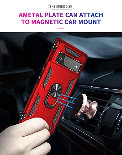 DOINK Cover Armor per Google Pixel 6, Custodia TPU+PC Antiurto con Anello Supporto - Rosso